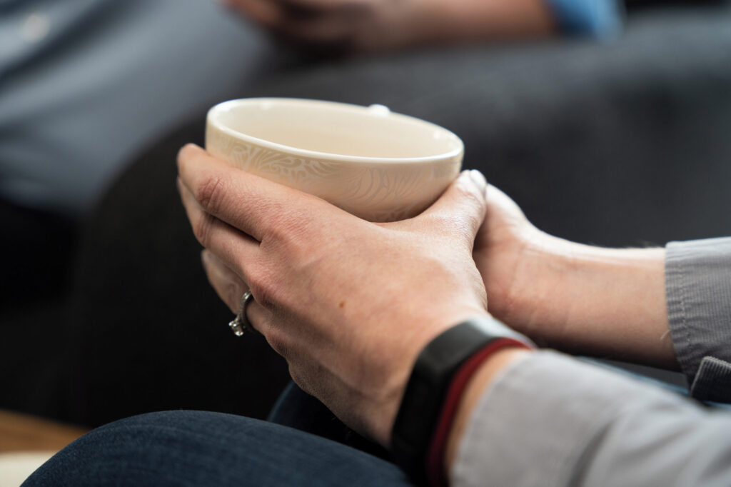 After that I head down to the hospital coffee shop, to have a cup of tea with the wife of a patient in a drug-induced coma. Meeting away from the unit can provide a more neutral space to meet relatives and coming here gives her a break from his bedside. It allows her the chance to talk about the effect of his incident on her mental wellbeing, as well as to ask for help on practical matters.